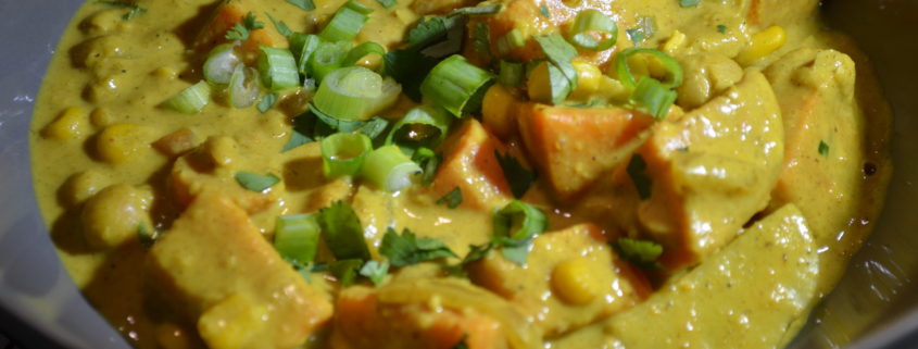 If you plan ahead you can marinate the chicken. Add about 1/4 cup of the coconut milk, 1 tsp garam masala, salt and pepper and mix, add chicken and marinate at least 30 minutes or up to 8 hours.